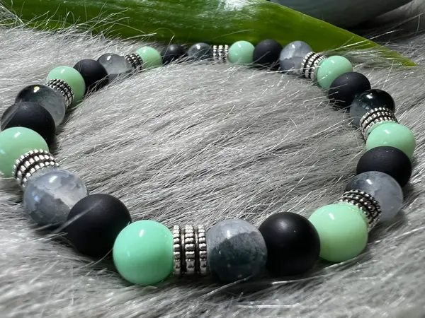 🖤 Elegantní náramek v odstínech černé a mint 💚