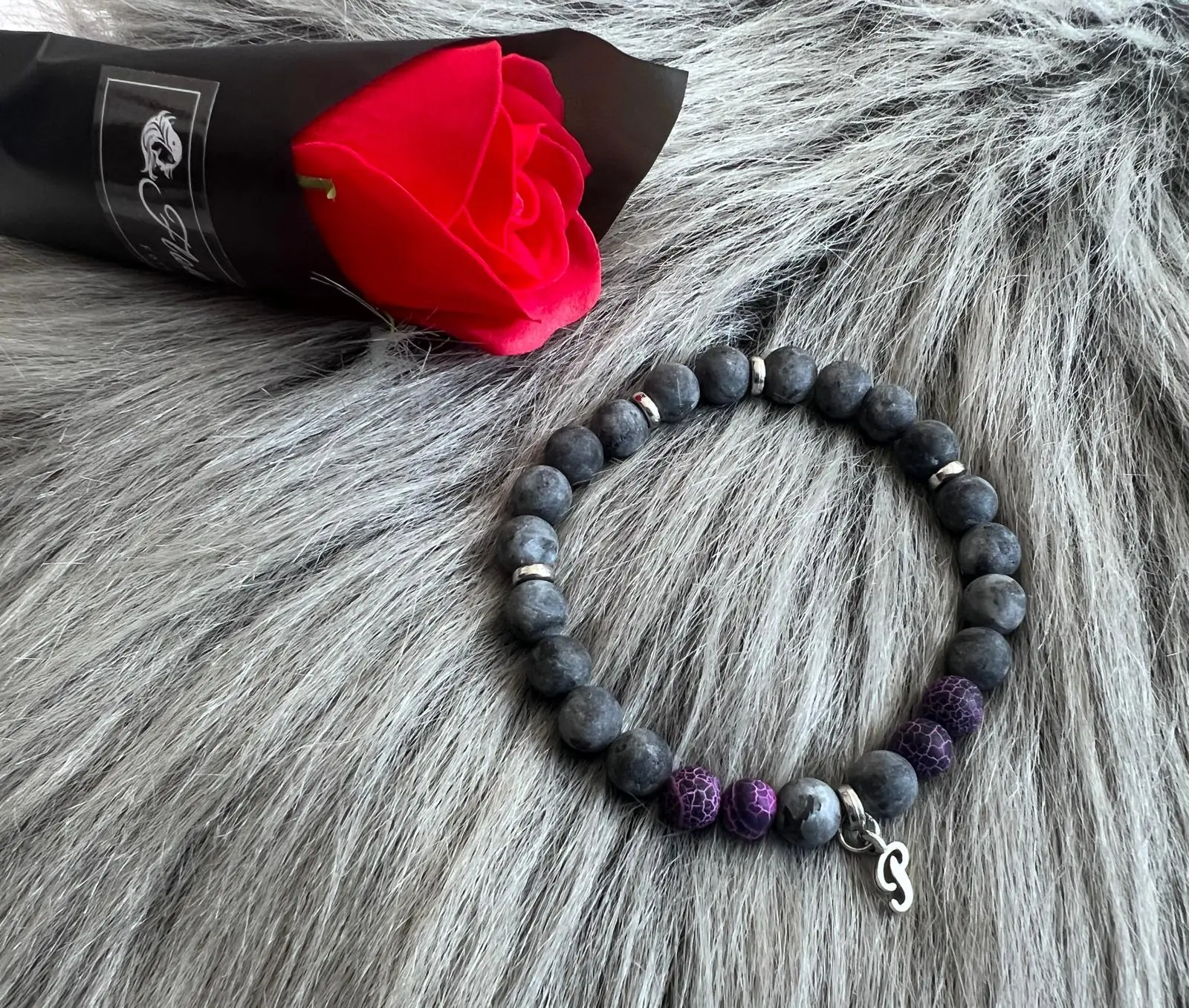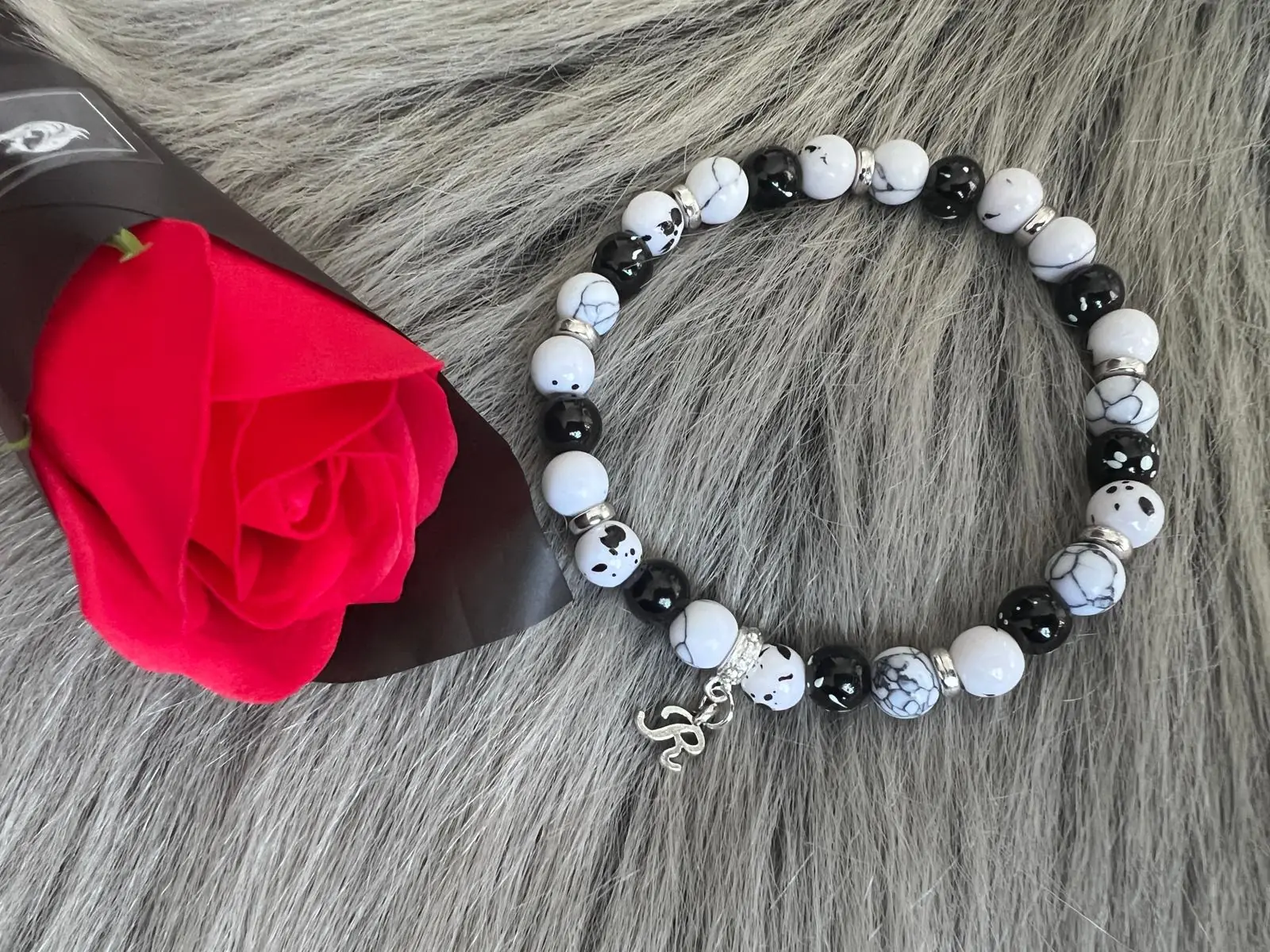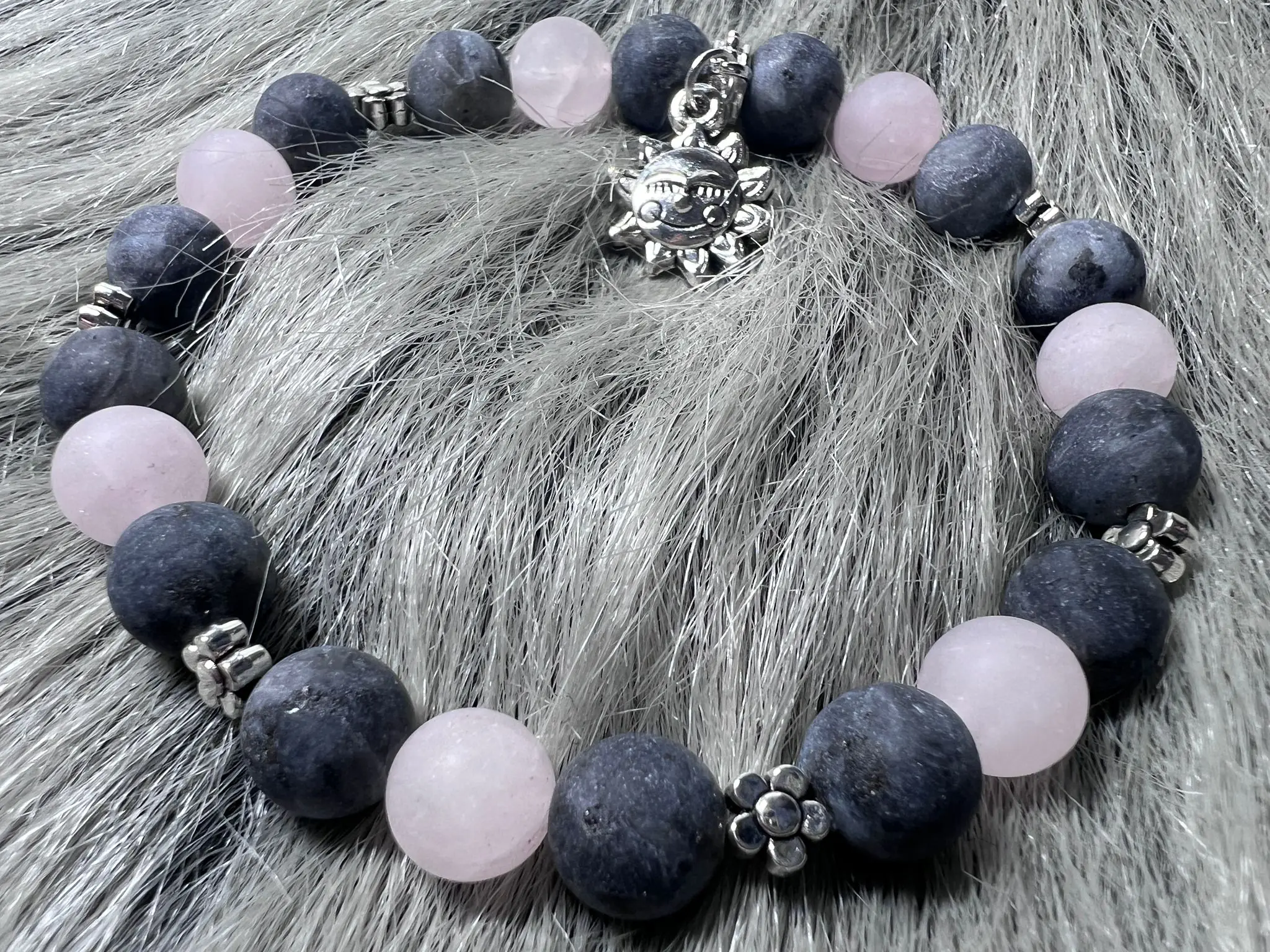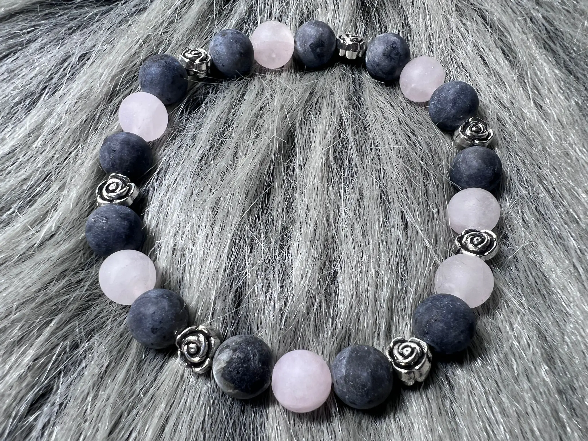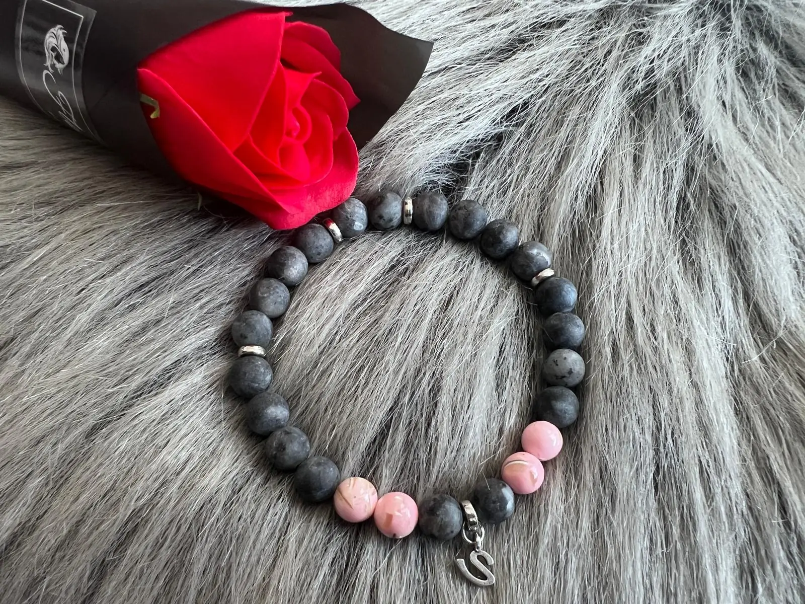 🌸🖤 Náramek s růženínem a tmavými kameny – harmonie a styl