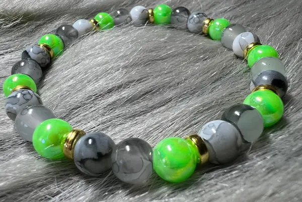 💚 Náramek v odstínech šedé a zářivě zelené se zlatými detaily 💛