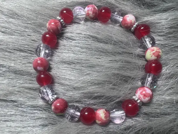 Korálkový náramek – odstíny růžové a červené